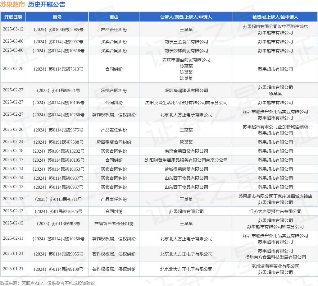 本站消息,根据天眼查APP显示,近日公布了一则苏果超市有限公司作为被告/被上诉人的开庭公告,详细内容如下: